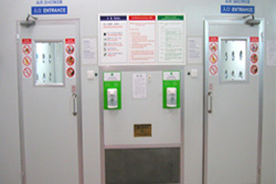 清洗雙手并用酒精消毒機(jī)殺菌消毒,并經(jīng)風(fēng)淋通道除塵消毒進(jìn)入。車間還裝有環(huán)保空調(diào)機(jī),可以凈化車間環(huán)境,